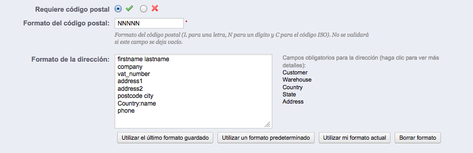 Juanpol Posted September 25, 2013 Author Share Posted September 25, 2013 Pestaña Localización -> Países -> Editar Pais -> Formato de la dirección -> Añadir "dni" en el formato de dirección. victor gracias por la info pero... debo añadir la palabra "dni" exacta... dónde? gracias! Link to comment Share on other sites More sharing options...