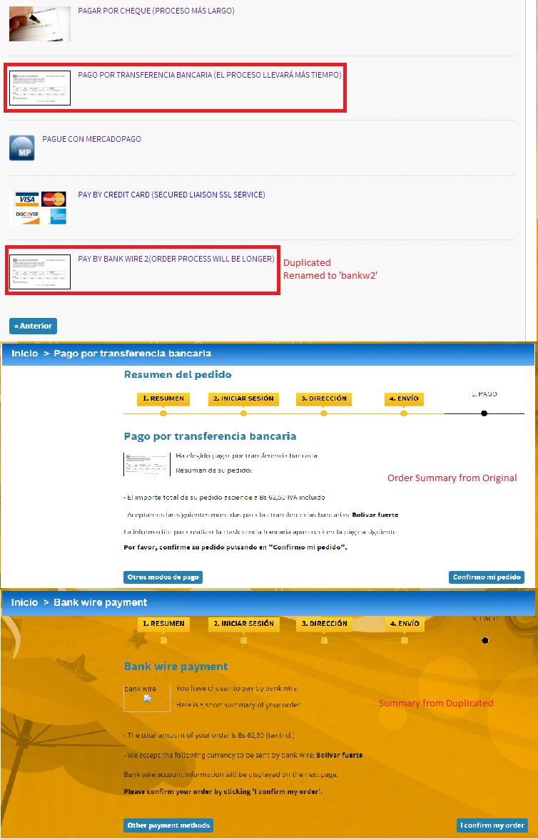 hypercraker Posted September 25, 2013 Share Posted September 25, 2013 I'm developing a Payment Module and I'm quite new at PrestaShop. Here is the problem: When the list of payment methods shows, it works well. But as soon as I choose my payment method, the next page (summary page) does not show the template correctly as the div with id "leo-columns" does not have the aproppiate css rules applied. I thoght it was something I was doing wrong, so I decided to duplicate the bankwire module that is already install. I duplicated the bankwire folder and renamed it to 'bankw2'. So I did with the views and controllers, and the problem persist by only changing the module name. I've attached an image where you can see: 1) The list of payments modules correctly installed in my server. The first within the red square is the original bankwire, and the other is the duplicated. 2) How it shows the Summary page in the original module 3) How it shows the Summary on the ducplicated. You can see that the white background is gone. As I said before, the 'leo-columns' div is not being applied with the css rules correctly. The only changes I've made was changing the 'bankwire' names (module name on folders, images, class names, templates, etc) to 'bankw2' Please, I really appreciate your help. Link to comment Share on other sites More sharing options...