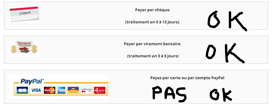 neomega Posted September 25, 2013 Share Posted September 25, 2013 bonjour, j’espère poster au bon endroit prestashop 1.5.5.0 si on souhaite modifier le texte ou l'image pour les autres moyens de paiement on vas dans thème --> le thème -->module -->ex: chèque -->payment.tpl et on peut modifier mais pour Paypal je ne trouve pas ou sa se trouve j'ai cherche dans : modules --> Paypal --> views --> templates --> front mais je ne trouve pas ou modifier merci d'avance pour votre aide ci joint une image au cas ou je l'aurai mal expliquer Link to comment Share on other sites More sharing options...