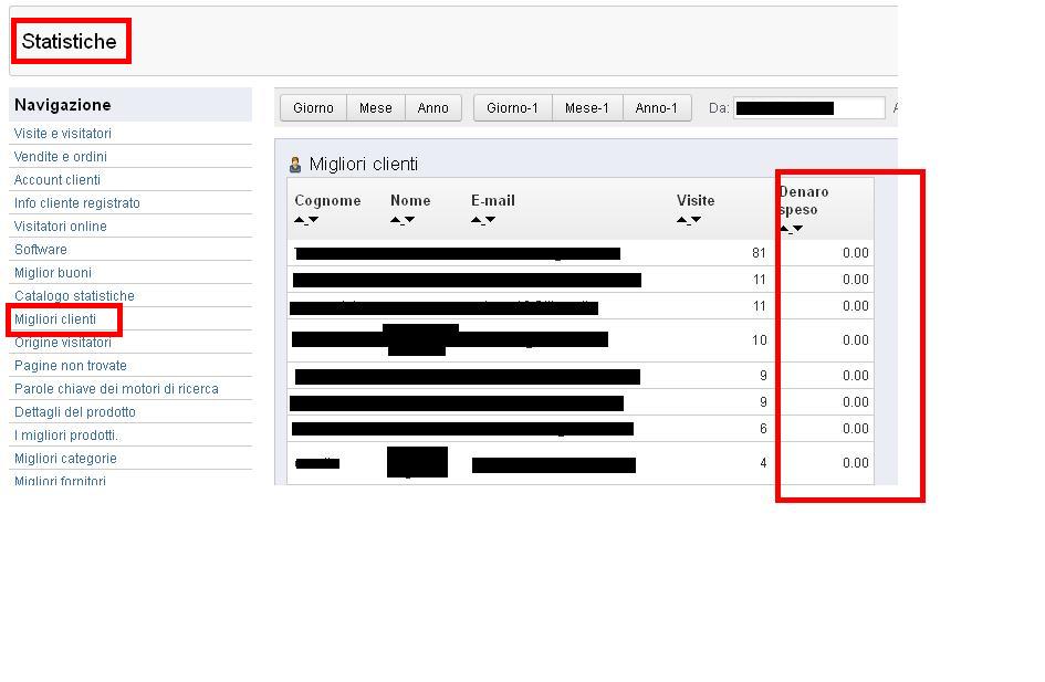 ba609 Posted September 26, 2013 Share Posted September 26, 2013 Salve,nella sezione Statistiche alla voce Migliori Clienti è possibile ordinare i clienti in base al Denaro Speso, il problema è che questo si basa sulle fatture, cosa che io faccio a parte con un programma gestionale. (vedi immagine allegata) La domanda è:- Come faccio ad impostare la voce relativa al denaro speso dal cliente con il totale degli importi dei carrelli del cliente stesso ?In sostanza non voglio l'associazione con le fatture ma voglio l'associazione con i carrelli. Grazie mille. Ciao. Link to comment Share on other sites More sharing options...