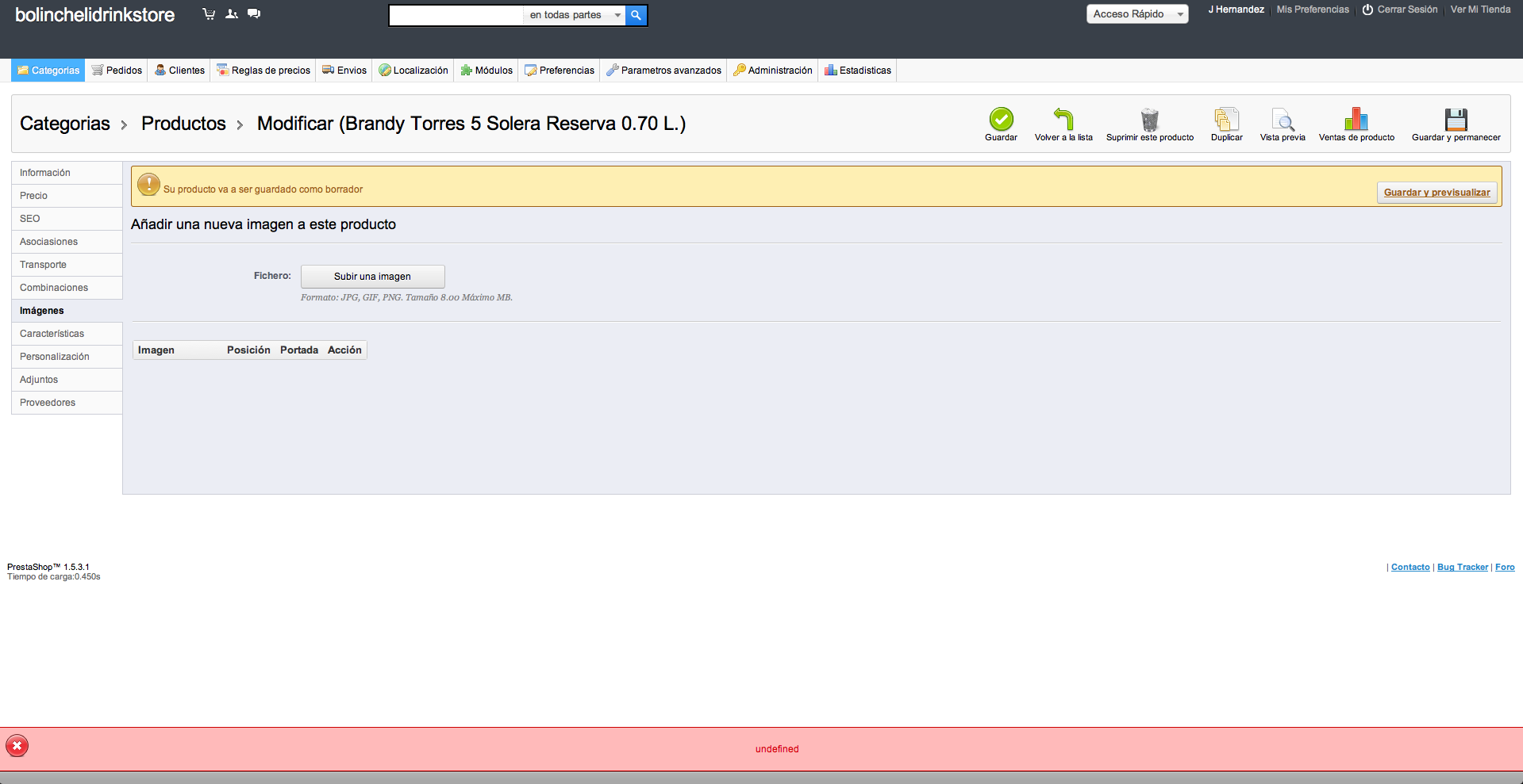 bolincheli Posted September 30, 2013 Share Posted September 30, 2013 Version 1.5.3.1 www.bolinchelidrinkstore.com Hola, desde ayer que no puedo subir las imágenes a mi tienda, me sale un error que dice undefined.Que puedo hacer? Que solución hay? Deberia actualizar la versión de prestashop? Gracias. Link to comment Share on other sites More sharing options...