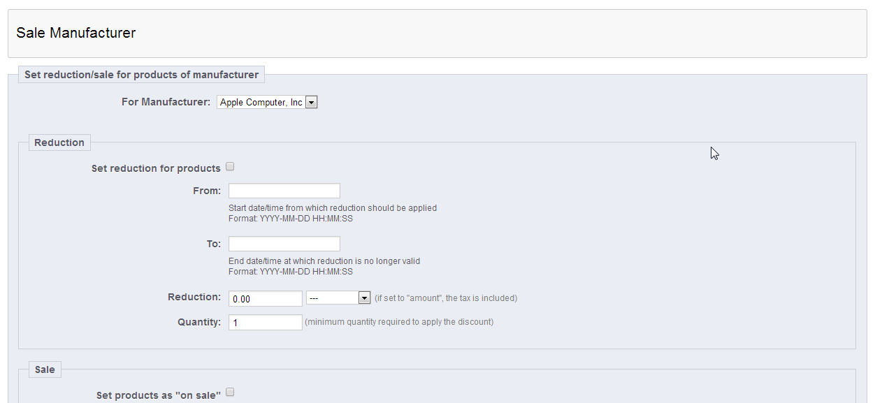 btc.dev Posted October 1, 2013 Share Posted October 1, 2013 Ce module permet d’appliquer une réduction, d'un montant ou d'un %, et de mettre le statut 'en solde' à tous les produits d'une marque. Pour plus d'information visitez notre site http://btcdev.net/fr/sale-manufacturer ou contactez nous. Cordialement, BTConsulting Link to comment Share on other sites More sharing options...
