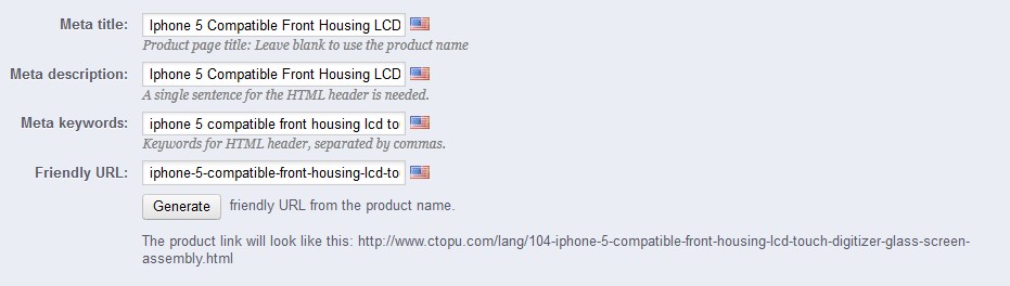 vekia Posted October 2, 2013 Share Posted October 2, 2013 name iPhone 5 compatibile front housing This name is product title and same Meta title, right? Yes you've got right. meta title - product name meta description - several words about your product meta keywords - most important words related to product Link to comment Share on other sites More sharing options...