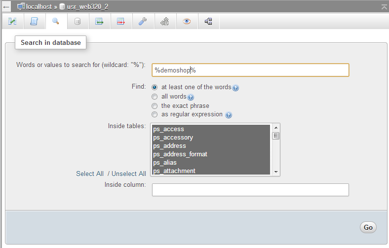 2. Alte Domains durch neue ersetzen, bei uns waren es je 2 Einträge in den Tabellen ps_configuration / ps_shop_url