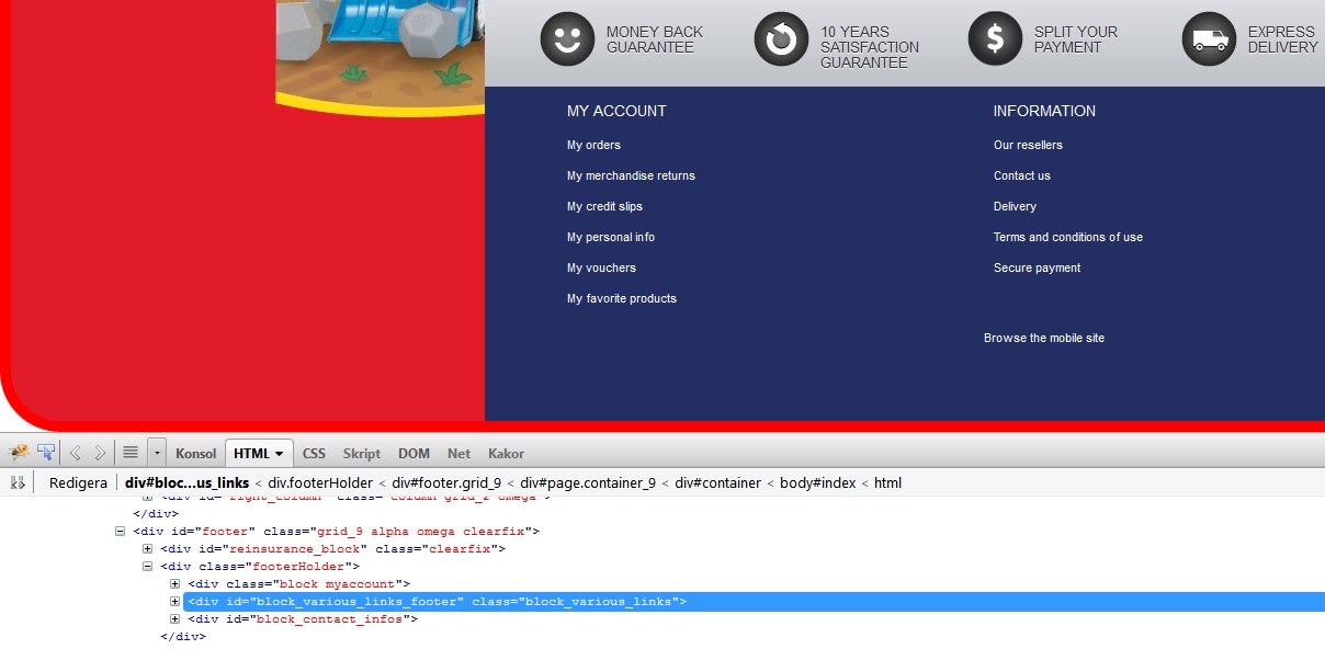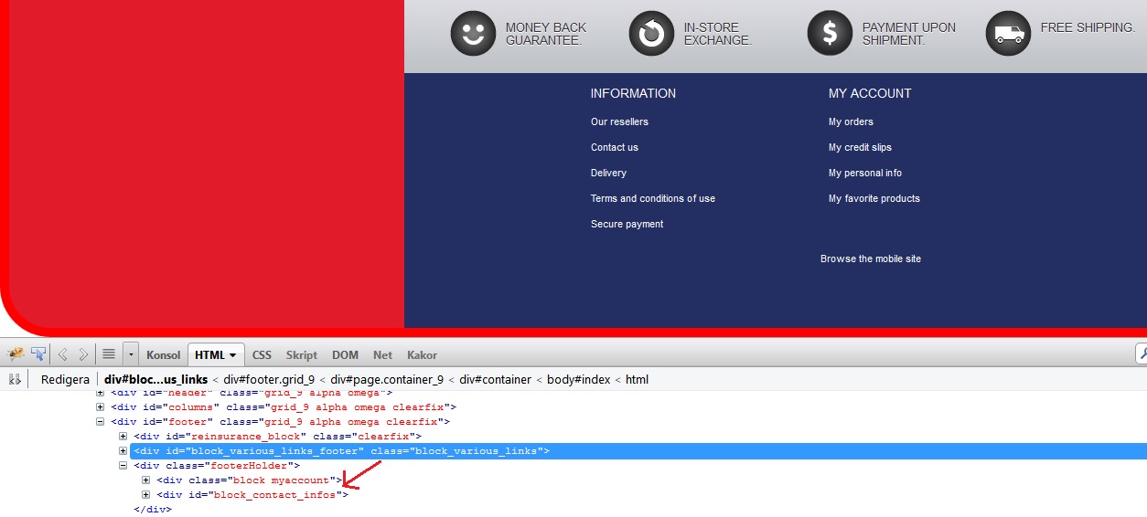 MGLimhamn Posted October 3, 2013 Share Posted October 3, 2013 (edited) Hi, I have two shops at the moment, one is finished, one isn't. And I found a problem with the unfinished one in the footer which I need help with. This is how it looks on my finished shop: As you can see, the My Account block is to the left as it should be, then followed by the Information block. This is how it looks on the new shop: As you can see, the order is incorrect, and if you look in the code, you can see that block_various_links_footer somehow is outside my footerHolder when it should be inside it, and to the right of My Account, which it isn't. I want to move the block_various_links_footer after My Account as seen in the last picture. Can somebody please help me with this? Edited October 3, 2013 by MGLimhamn (see edit history) Link to comment Share on other sites More sharing options...