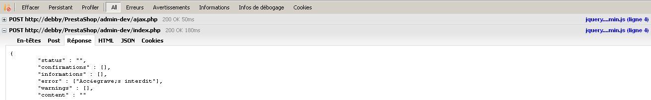 Si flemme de chercher dans les logs, vous pouvez aussi activer le mod_dev dans /config/settings.inc.php et regarder les réponses des requêtes POST qui donne une 500, notamment ces trois là.