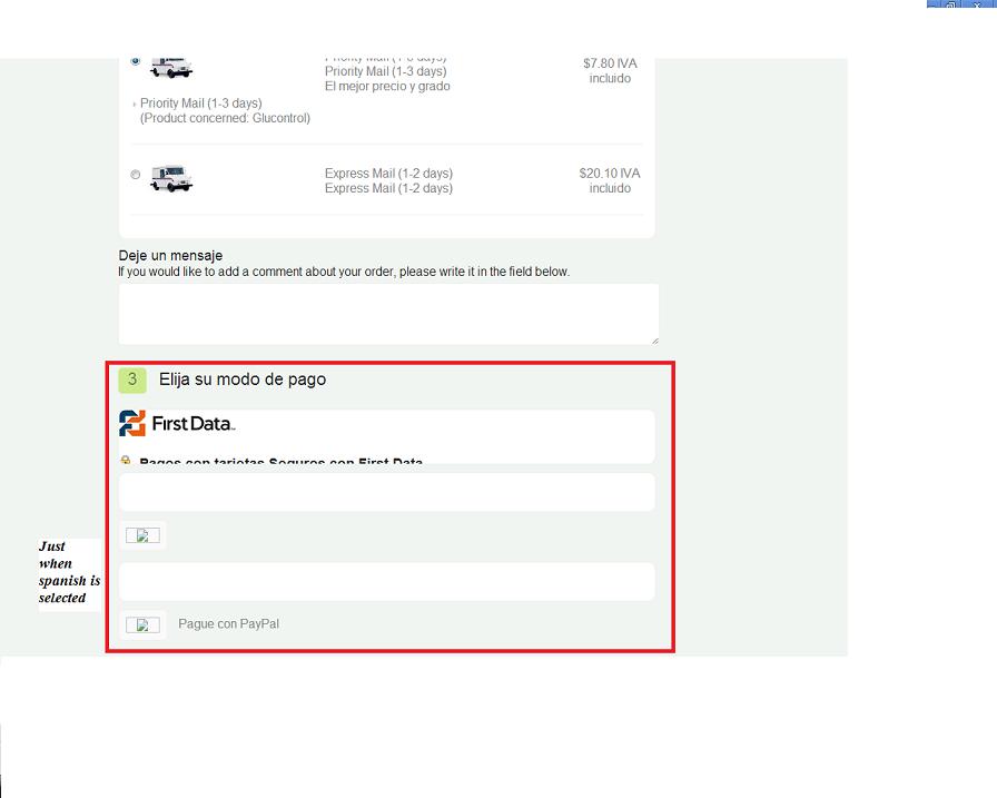 iride Posted October 9, 2013 Author Share Posted October 9, 2013 PAYPAL IMAGE ERROR ON SPANISH BUT FIRST DATA CUT OFF IS ON BOTH LANGUGES Link to comment Share on other sites More sharing options...