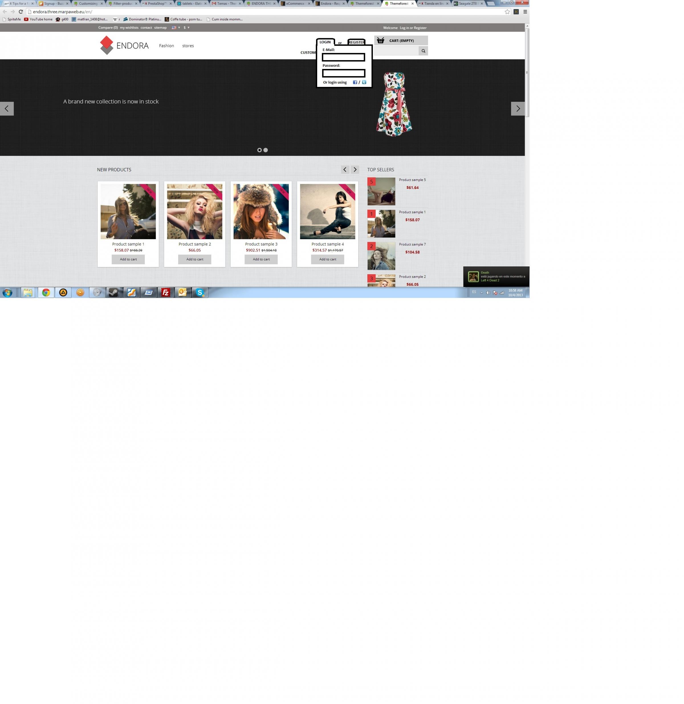 moy2010 Posted October 10, 2013 Share Posted October 10, 2013 Pronto migraré al tema Endora para prestashop 1.5, y en su menú superior estoy buscando el tener los botones/opciones para inicio de sesión y registro de los clientes, así como el teléfono de atención a clientes (básicamente sólo texto). Lo detallo: 1.- Actualmente estoy usando el tema Elation Liquid Responsive Theme (http://elationbase.com/elation-liquid/demo/light/en/), y creo que ese espacio en el menú del nuevo tema Endora podría ser usado con los botones de inicio de sesión y registro como lo muestra la imagen 1. 2.- Al hacer clic en el botón "iniciar sesión" busco que se despliegue un menú contextual para que introduzcan su correo y contraseña (imagen 2). 3.- También busco que los clientes tengan la opción de iniciar sesión o registrarse via Facebook/Twitter como se ve en la imagen 2. Ya antes he tenido módulos del tipo "Facebook Login", pero lo más cercano que he encontrado es el siguiente: http://www.businesstech.fr/fr/modules-prestashop-reseaux-sociaux-facebook/30-facebook-ps-connect-paypal-access-google-twitter.html En el menú superior de Endora existe la posibilidad de agregar código HTML por parte del usuario y ya he podido cargar ahí un bloque para el inicio de sesión, pero hace falta trabajar con el CSS, jquery y otras curradas para que además quede en el lugar que busco a la derecha del menú. Estoy abierto a cotizaciones de parte de los desarrolladores y expertos de prestashop, así como a ideas o sugerencias por parte de la comunidad. Básicamente lo que busco es hacérselos lo más fácil posible a los clientes para que se registren, inicien sesión y vayan a su cuenta. Saludos! Link to comment Share on other sites More sharing options...