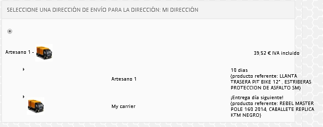 sara alvarez Posted October 10, 2013 Share Posted October 10, 2013 Buenas chicos! Estamos haciendo una tienda con muy pocos recursos versión PrestaShop™ 1.5.3.1 Es con fin social y tiene artesanos de toda España, pero no tendríamos un centro logístico, sino que cada artesano envía directamente. El problema, si seleccionan productos de varias categorias ( para nosotras artesanos) es que necesitamos que se acumulen gastos de envío por artesano ya que son independientes. No se envía junto. Por más que navego el backend no encuentro como elegir que se active alguna regla. Disulpad si este tema está resuelto, o no me he explicado bien no he encontrado nada. gracias! Link to comment Share on other sites More sharing options...