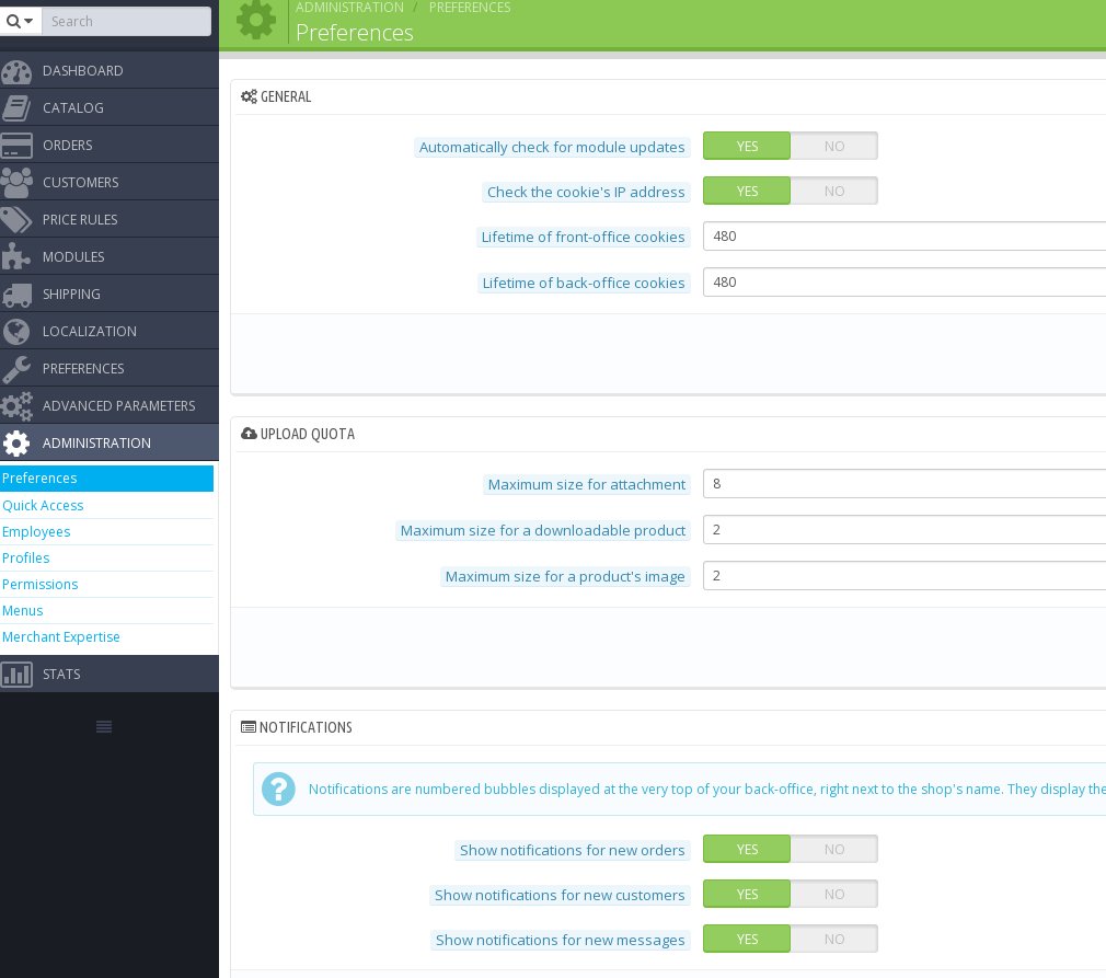 Gregory Roussac Posted November 4, 2014 Share Posted November 4, 2014 1. In Preferences/General there is nothing about IP check, is it now named ad "Increase Front Office security"? (but this problem happen only in BO, not FO) Hi, Administration > Preferences > second option ? Regards Link to comment Share on other sites More sharing options...