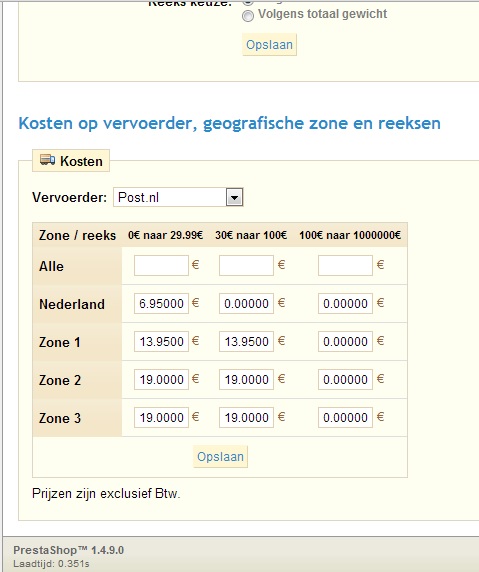 scorpionsworld Posted October 16, 2013 Share Posted October 16, 2013 Door je verzender(s) (bijvoorbeeld PostNL) meermaals aan te maken (zelfde naam, andere ID) en deze te koppelen aan hun respectievelijke zone's. Voor binnenlandse zendingen zou je dan een extra zone 'Binnenland' moeten aanmaken en daar Nederland aan moeten koppelen. Link to comment Share on other sites More sharing options...