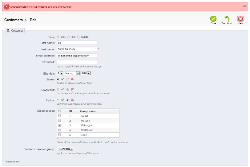 Setiap customer yang daftar melalui email secara default langsung masuk sebagai pelanggan