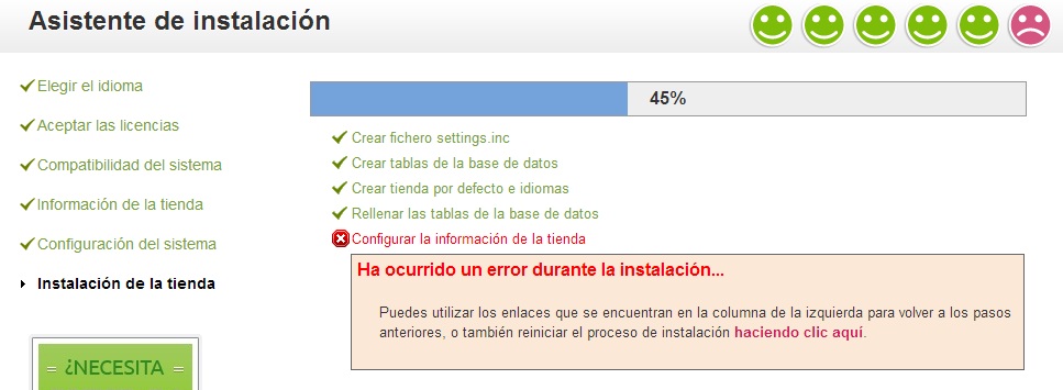 Assamita Posted October 17, 2013 Share Posted October 17, 2013 Hi everybody. I'm trying to install Prestashop and it always fails at the same spot (see screenshot). I've tried in two different hosting servers, and the error message doesn't say anything about how to solve it. Can you help me? Thank you Link to comment Share on other sites More sharing options...
