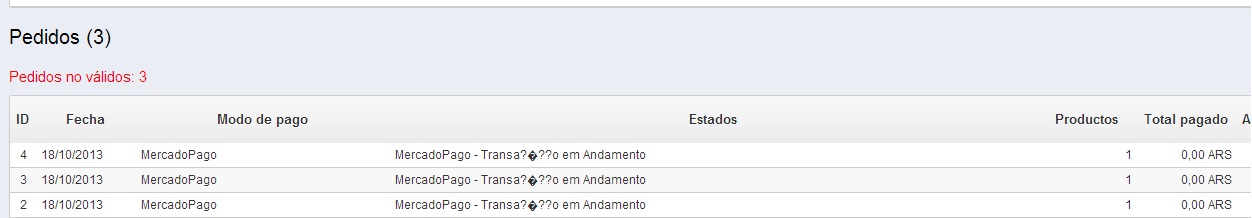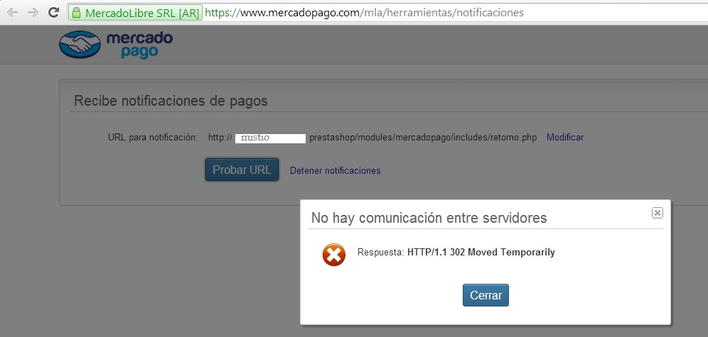 Numte Posted October 18, 2013 Share Posted October 18, 2013 Tengo principalmente dos consultas. La primera tiene que ver con que instale el modulo de mercado pago para la versión 1.5.3 de prestashop y cuando lo configure con mi cuenta de mercado de pago hice lo siguente: Luego en la configuracion de IPN en https://www.mercadopago.com/mla/herramientas/notificaciones de mi cuenta puse lo mismo, pero cuando hago clic, en "probar URL" me tira un error: "HTTP/1.1 302 Moved Temporarily" y me dice "No hay comunicación entre servidores". ¿Por que será esto? Después, realice en mi tienda unas compras de prueba a través de mercadopago y, segun mi cuenta de mercadopago la operacion esta en proceso, pero en la seccion clientes de mi tienda me aparece "pedidos no validos", a continuacion pongo la imagen. ¿alguien sabe por que me marca eso? Espero que puedan ayudarme desde ya gracias. Link to comment Share on other sites More sharing options...