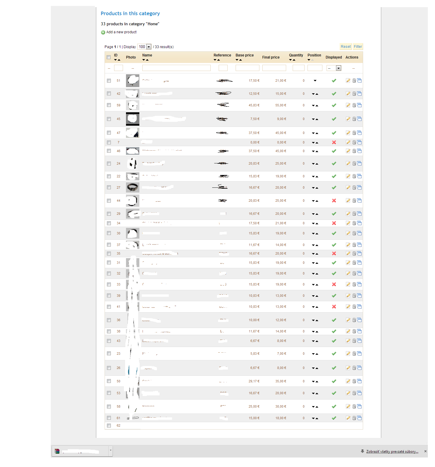 slayerko Posted October 20, 2013 Share Posted October 20, 2013 (edited) Hi, when i clicked on products catalog in administration, i can not see all of the products (i have 33 products, but numbering is at number 63 now). The products really exist, but i can reach to them only trough search. If you look at picture catalog.png, which i attached, you can see at the bottom of the site, that there is a product 62 with nothing else and the product number 63 is not there absolutly. Have i damaged some files or what do you think about it? I am expecting, that joomla has no limits to count of product or not? Please help, if someone can. Prestashop version is PrestaShop™ 1.4.7.0 PS: When i go to some subcategory and try to display only some products (for example some filter for only 3 products) the problem is not solved, that product number 63 i can not see this way. Edited October 20, 2013 by slayerko (see edit history) Link to comment Share on other sites More sharing options...