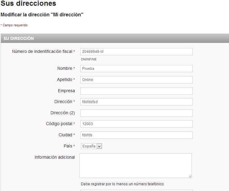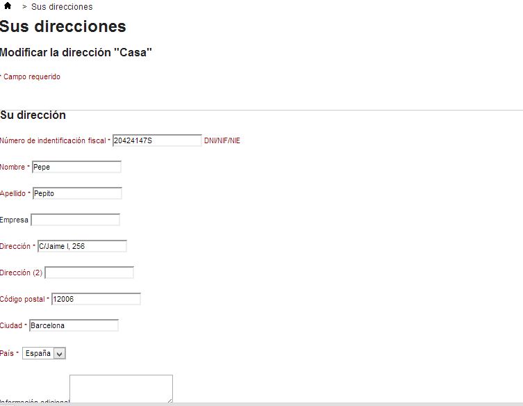 snowlis Posted October 21, 2013 Share Posted October 21, 2013 (edited) Estaba modificando el formulario de prestashop que te permite modificar una dirección de envío ya registrada introduciendo tu DNI, teléfono, dirección, etc. En concreto estaba siguiendo este manual ya que en el campo DNI admite todo tipo de valores: http://www.prestashop.com/forums/topic/168408-validar-el-dni-nif/page-2 No sé si ha sido debido a eso o qué ha pasado pero he perdido el estilo visual del formulario (como si no estuviera aplicando la hoja de estilo .css que le corresponde). En vez de ver el formulario así que es como viene por defecto: Yo lo veo así: ¿Alguién puede explicarme que archivos debo sobreescribir o qué debo hacer para recuperar el estilo por defecto de ese formulario? Edited October 21, 2013 by nadie (see edit history) Link to comment Share on other sites More sharing options...
