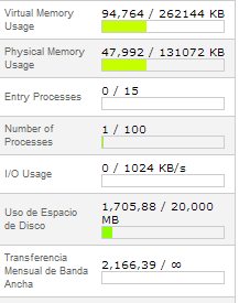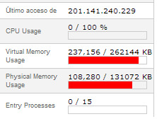Mary Brezden Posted October 23, 2013 Author Share Posted October 23, 2013 Por cierto... esta es la memoria del servidor compartido que jubilamos, mira la memoria virtual, es 5 veces la del tuyo... donde no hay, no se puede sacar más Que tristeza, entonces por lo que te endiendo es que debo cambiar de paquete verdad? Bueno si fuera el caso que debo buscar en un servidor o host? esque todos ofrecen lo mismo y no sabría definir que es aquello que realmente sirve y como saber si son compartidos o no? Link to comment Share on other sites More sharing options...
