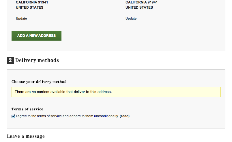 meepohver Posted October 23, 2013 Share Posted October 23, 2013 (edited) I am so incredibly frustrated. I have searched everywhere through google the last several days and I have searched these forums to locate a solution. I also have posted to the forge, just in case, but have not received a solution through there as well. The problem: I have removed prestashop's default carriers and have created my own carriers. Three are free and six carriers are not. I have made so that shipping is priced by weight for the non-free carriers. I have inserted proper countries, weight ranges, enabled shipping and handling, enabled apply shipping cost, disabled free shipping (both lb and $ set to 0) in the 'shipping' menu page, etcetera. I have completed everything. Weight information have also been applied to each product in the catalog. Carriers have been selected from the product page section. Still, when I go to the cart page (with products in cart) on the front office there are still no carriers displayed and I receive this error: There are no carriers available that deliver to this address. This is incorrect because carriers are for north america/united states and the shipping address is for the united states. I need some assistance as quickly as possible due to a deadline. Help will be greatly appreciated!! Using Prestashop 1.5.5 Edited October 23, 2013 by meepohver (see edit history) Link to comment Share on other sites More sharing options...
