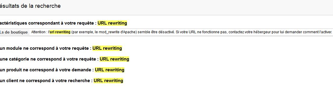 Sinon et bien l'URL simplifié était déjà décoché avec un message d'erreur, je l'ai recoché puis redécoché plusieurs fois en enregistrant à chaque fois, le message d'erreur n'y est plus mais j'ai un beau point d'intérogation à la place ....................mais toujours pas mes produits dans leur catégories.