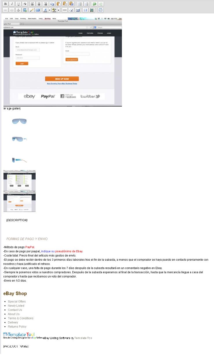 hsale Posted October 24, 2013 Share Posted October 24, 2013 Hi all, Im trying to add my template on the template magager ebay module, but when I paste it , the template change , how can I config it? and about the pictures, the template have gallery photo, so can I config it? have some tutorial or other post with this info? here is my template and the module ebay template too. thx Link to comment Share on other sites More sharing options...
