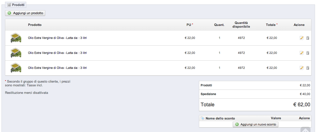 allavam Posted October 24, 2013 Share Posted October 24, 2013 (edited) Hi! I've an issue in a website I created for a client. Prestashop version is 1.5.2.0. That is the issue: - order is received - my client access Back Office to take a look at the order details - although the customer ordered, for example, 1 oil can, he find that there are 3 oil cans in the order detail page. - the strange thing is that the total price, with shipping costs, is for 1 oil can + shipping costs, that is correct price. The customer in Front Office haven't that issue, he see correctly what he buy, so it's only an issue in BO. Website is online since last year and never had that issue. The only thing changed by the last year is the add of shipping cost for other countries than Italy, but I don't understand how that can affect the quantity of products showed in order page details. I hope that somebody can help to solve that, I'm struggling with that but I don't find any solution and my client call me everyday. I attach an image to better understand what I mean. Thank you! Edited October 24, 2013 by allavam (see edit history) Link to comment Share on other sites More sharing options...
