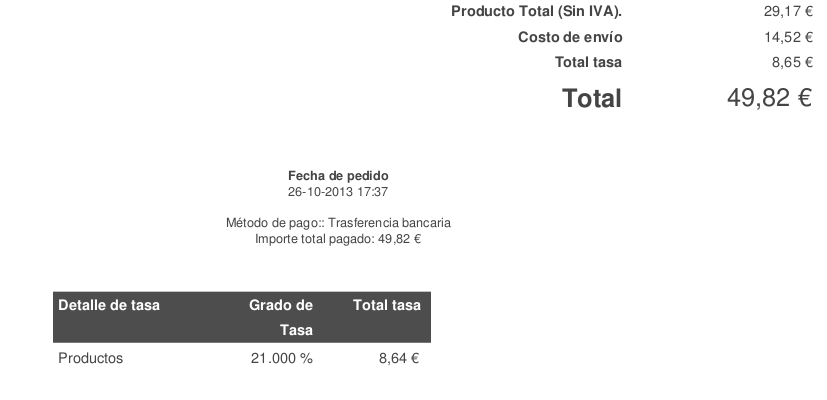 echebejo Posted October 26, 2013 Share Posted October 26, 2013 Buenas tardes, En primer lugar, perdón por hacer un nuevo post sobre este tema, pero es que no hay forma de conseguirlo, después de leerme todos los posts y soluciones que se han aportado: españolización de factura, poner de nuevo la carpeta pdf y classes... El caso es que en la demo de prestashop desglosa bien, pero a mi no. Tengo la versión 1.5.6.0 y las facturas me salían sin desglosar. He probado con "la españolización de facturas" y obtengo el mismo resultado: ¿qué tengo que hacer para que me aparezca el desglose??? ¿Qué ficheros o configuraciones tengo que tocar? Muchas gracias Link to comment Share on other sites More sharing options...