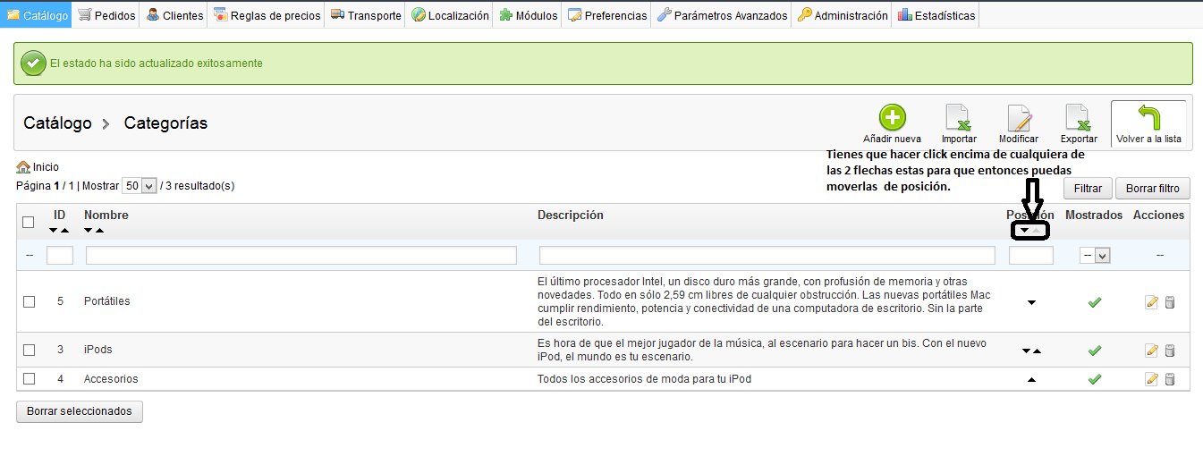 (SOLUCIONADO)No puedo ordenar las categorías me salen números en lugar de flechas