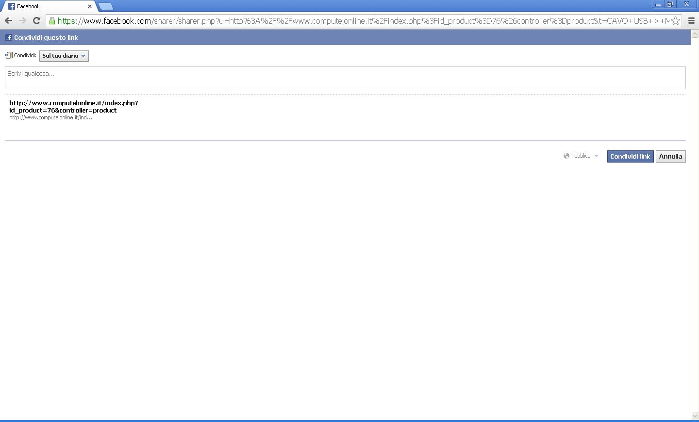 computelderuta Posted October 28, 2013 Share Posted October 28, 2013 (edited) Buongiorno a tutti, ho un problema nella condivisione con facebook. Dal sito se clicco su condividi con facebook mi pubblica solo il link e non carica né l'immagine né la descrizione. Utilizzo prestashop 1.5.6.0. ho provato anche con altri moduli oltre quello installato ma ho lo stesso problema presumo che ci sia qualche inpostazione sul sito da modificare ma non sò cosa. Allego un esempio. Qualcuno può darmi una mano. Grazie in anticipo. Edited October 29, 2013 by computelderuta (see edit history) Link to comment Share on other sites More sharing options...