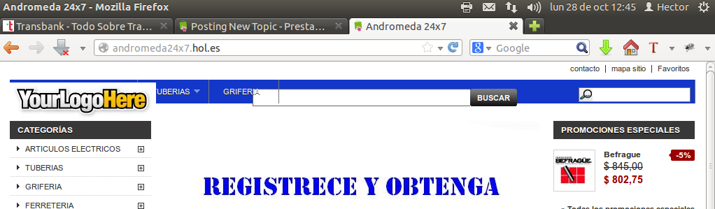 Hector Peña Posted October 28, 2013 Share Posted October 28, 2013 (edited) Hola amigos, a ver si alguien me puede decir que paso, he revisado todo el foro y modifique lo que he podido pero todo sigue igual. muestro foto para que vean. tengo Prestashop 1.5.6.0 la url es andromeda24x7.hol.es el problema es la cabezera de la pagina, esta todo junto. Edited October 29, 2013 by Hector Peña (see edit history) Link to comment Share on other sites More sharing options...