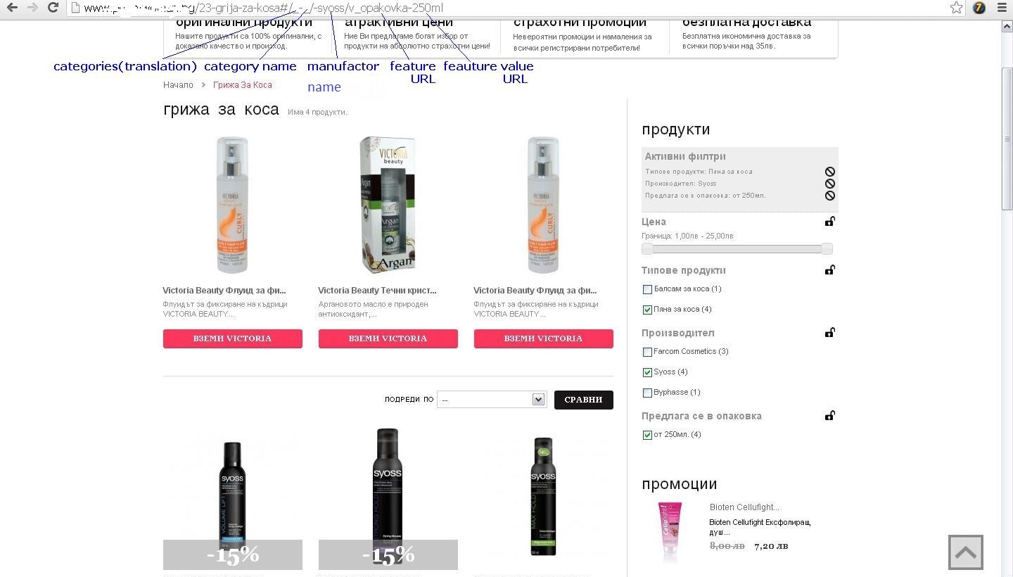 laziali Posted October 29, 2013 Share Posted October 29, 2013 (edited) Hi to all. I am having difficulties with my layered urls. As my categories are Cyrillic words and layered nav reads category name, my urls end up with _-_ instead of category(translation)-category_name ex: http://domain.com/158-mama-i-bebe#/_-_/-sanosan/v_opakovka-100ml same thing with manufactures. features however are displayed with their nav urls. As far as i know 1.5.3.1 cant use Cyrillic urls and i am using Cyrillic for names and Latin for friendly urls. so my question is how to make blocklayered reads manufactures & categories friendly urls, not their name?thanks. Edited October 29, 2013 by laziali (see edit history) Link to comment Share on other sites More sharing options...
