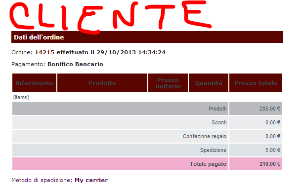 sandadi Posted October 29, 2013 Share Posted October 29, 2013 Ciao a tutti sto testando il multi negozio ps 1.5.6 negozio 1negozio sexy 2stesso spazio hostingassociati: magazzino, clienti, ordini ecc (categorie divise in base allo shop) Sembra funzionare tutto quando faccio una prova di acquisto succede che le email vengono spedite sia al negoziante perfetta con elenco descrizioni eccinvece al cliente viene inviata email ordine senza descrizioni e prodotti solo il totale e spese di spedizionevedi IMG allegataC'è da dire che l'ordine viene fatto dal cliente nei 2 negozi contemporaneamente di fatti il prodotto 1 viene dal negozio 1 i prodotti sexy vengono dall'altro.Qualcuno sa spiegarmi cosa succede.Ps ho già modificato le email che si trovano su shop/mail/it anche con il file inglese ma l'errore è uguale quindi escludo questa strada, poi ho copiato anche l'email del modulo mailaalert/mail/it stessa cosa.Consigli e/o aiuti... qualcuno può fare delle prove e vedere se gli capita la stessa cosagrazie Link to comment Share on other sites More sharing options...