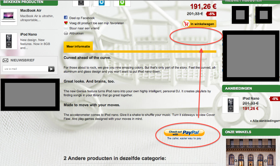 shai88 Posted November 4, 2013 Author Share Posted November 4, 2013 (edited) De 'other products in the same category' is een module die inhaakt op de product footer hook. Zoek in de template /themes/jouwtheme/product.tpl {if isset($HOOK_PRODUCT_FOOTER) && $HOOK_PRODUCT_FOOTER}{$HOOK_PRODUCT_FOOTER}{/if}(rond regel 488), knip de regel en plak deze op een regel boven de regel {if isset($packItems) && $packItems|@count > 0}(rond regel 628) Beste Scorpionsworld, Geweldig, ik ben enorm geholpen met deze aanpassing. Dank je wel. Wat nu gebeurt is! is dat mijn paypal knop naar beneden is gegaan en ik wil hem boven de More Informatie hebben. ======== Opgelost ======== Ik heb de knop kunnen uitschakelen verander ..modules/paypal/css/paypal.css en voeg display:none regel 46. #payment_paypal_express_checkout{cursor:pointer;display:none} Edited November 4, 2013 by shai88 (see edit history) Link to comment Share on other sites More sharing options...