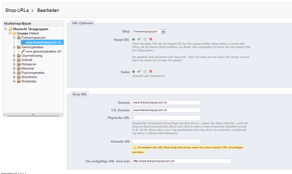 casi99 Posted November 7, 2013 Author Share Posted November 7, 2013 Stelle gerade fest das das Thema wohl doch eher in Installation und Einrichtung gehört. Ich habe folgendes Problem mit den URL's Einkaufscenter ist der eigentliche Shop Shop1 ist in Multishop angelegt Shop2 ist ebenfalls als Multishop angelegt Ich habe auf meinem Server die Domain www.einkaufscenter.de angelegt wo Presta installiert ist Aber was muß ich bei der Domain zu z.B. Shop1 dann eingeben? Ich blicke es einfach nicht. Kann mir mal jemand eine Step by Step anleitung geben, oder sagen wo ich das nachlesen kann Link to comment Share on other sites More sharing options...