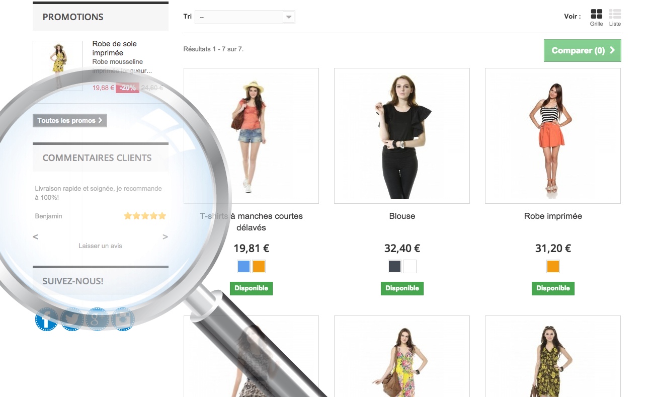 aubonheurdesprix Posted February 8, 2014 Share Posted February 8, 2014 Commentaires clients Description Ce module vous permet d'afficher des commentaires clients dans les colonnes de gauche ou de droite. Vous pouvez ajouter les commentaires directement par le back-office. Ce module est Responsive, il s'adapte à votre site quelque soit la largeur de vos colonnes. Ce module est très utile pour afficher par exemple vos évaluations eBay. Installation - Mettez le dossier customercomments dans votre dossier modules. - Allez dans la partie Administration de votre site et sélectionner l'onglet modules. - Ouvrez maintenant l'onglet "Marketing et publicité" et lancez l'installation du module. - Dernière étape, allez dans la partie configuration de ce module pour ajouter vos commentaires et avis clients. Demo Ce module est en démonstration sur ces deux sites: Pieces2iPhone i-Sticker Captures Capture d’écran 2013-11-07 à 19.51.33.pngCapture d’écran 2013-11-07 à 19.53.14.pngCapture d’écran 2013-11-07 à 19.58.11.png Fichiers customercomments.zip bonjour,aimerai savoir comment avoir le module sur votre site sticker de facebook %..... merci Link to comment Share on other sites More sharing options...