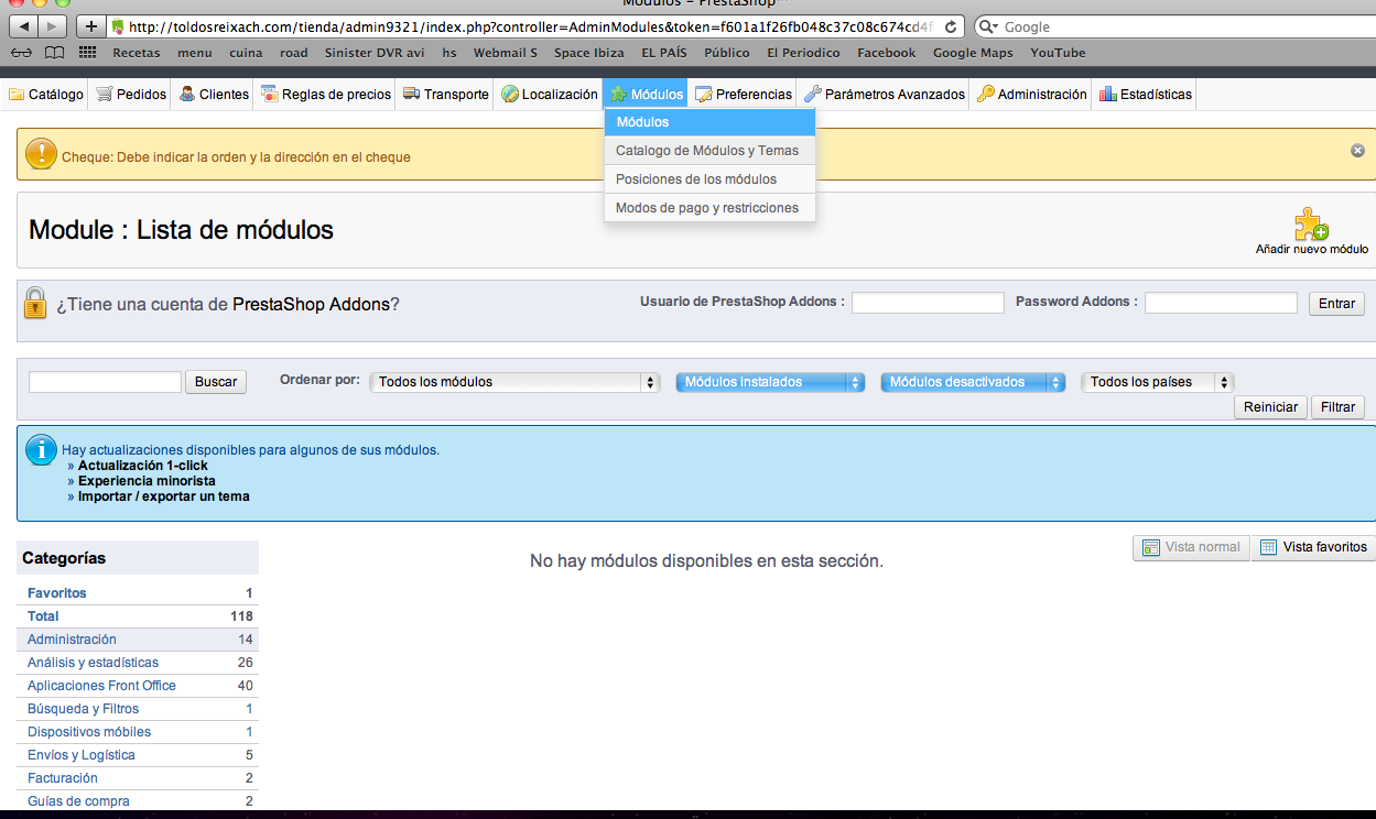 Cuando entro en el apartado Modulos no consigo encontrar la misma pantalla que me has adjuntado. Me figuran unas pantallas que no se donde ir para encontrar la misma pestaña que la tuya.