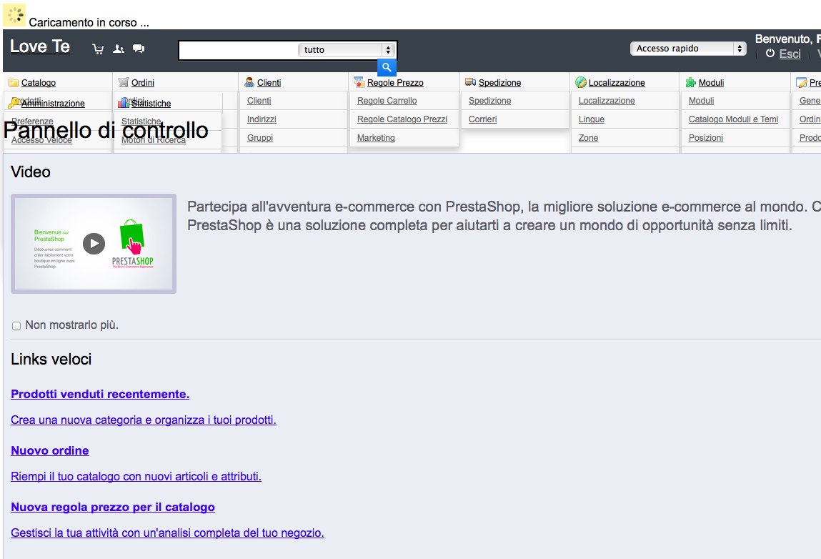 cenerebianca Posted November 11, 2013 Share Posted November 11, 2013 Ciao a tutti, dopo aver installato prestashop in locale su osx mavericks (server locale configurato correttamente) la pagina admin di prestashop non funziona correttamente, soprattutto dal punto di vista grafico. in alto rimane "caricamento in corso" che gira all'infinito, e il template della pagine di amministrazione è tutto incasinato. Da cosa potrebbe dipendere? l'installazione è stata eseguita seguendo la procedura ufficiale e non ho avuto nessun tipo di problema. allego screenshot. grazie.il problema si verifica su qualsiasi browser, anche dopo aver riavviato tutto. ho provato sia safari sia chrome sia firefox. Link to comment Share on other sites More sharing options...
