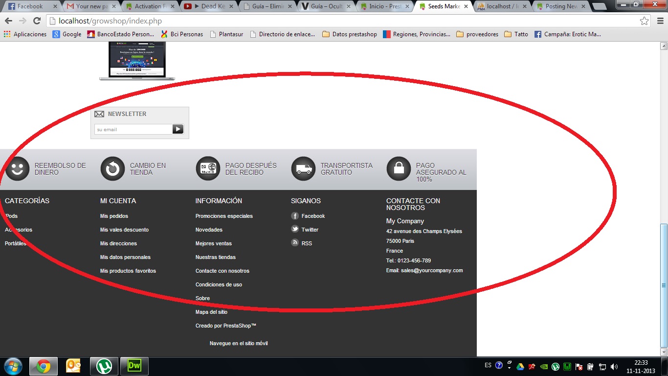 marduk88 Posted November 12, 2013 Share Posted November 12, 2013 Hola, tengo prestasho ver. 1,5,4. tema por defecto E quitado la columna derecha de la pagina por defecto. pero al modificar el ancho, el bloque footer se corrió todo a la izquierda de la pantalla, como hago para centrarlo nuevamente? adjunte un print de pantalla.. con el error Saludos Link to comment Share on other sites More sharing options...