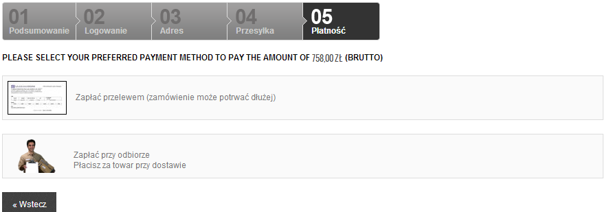 0 marcin1987a Posted November 13, 2013 Author Share Posted November 13, 2013 Cześć Są do tego zmodyfikowane moduły. Nie mniej jednak mnie wydaje się, że rozsądnie jest zrobić dwóch kurierów: jeden zwykła a drugi za pobraniem. Wszystko widać jak na dłoni: dwie ceny. Mnie jakoś odrzuca jak wybieram kuriera za jakąś kwotę a potem muszę dopłacić przy płatności za pobranie. A tak na marginiesie to czy ja jestem jedynym co uważa, że można mieć i ma dwóch kurierów normal i pobranie i nie dopłaca się przy formie płatności?!? 1. A możesz polecić jakieś do tego dedykowane moduły ? 2. Problem kurcze leży w tym że tak jak na zdjęciu , gdy przechodze do step5 do płatności nie moge jeszcze zmodyfikowac ceny co bylo by najfajniejsze aby pokazac cene przy przelewie jak i przy odbiorze Link to comment Share on other sites More sharing options...