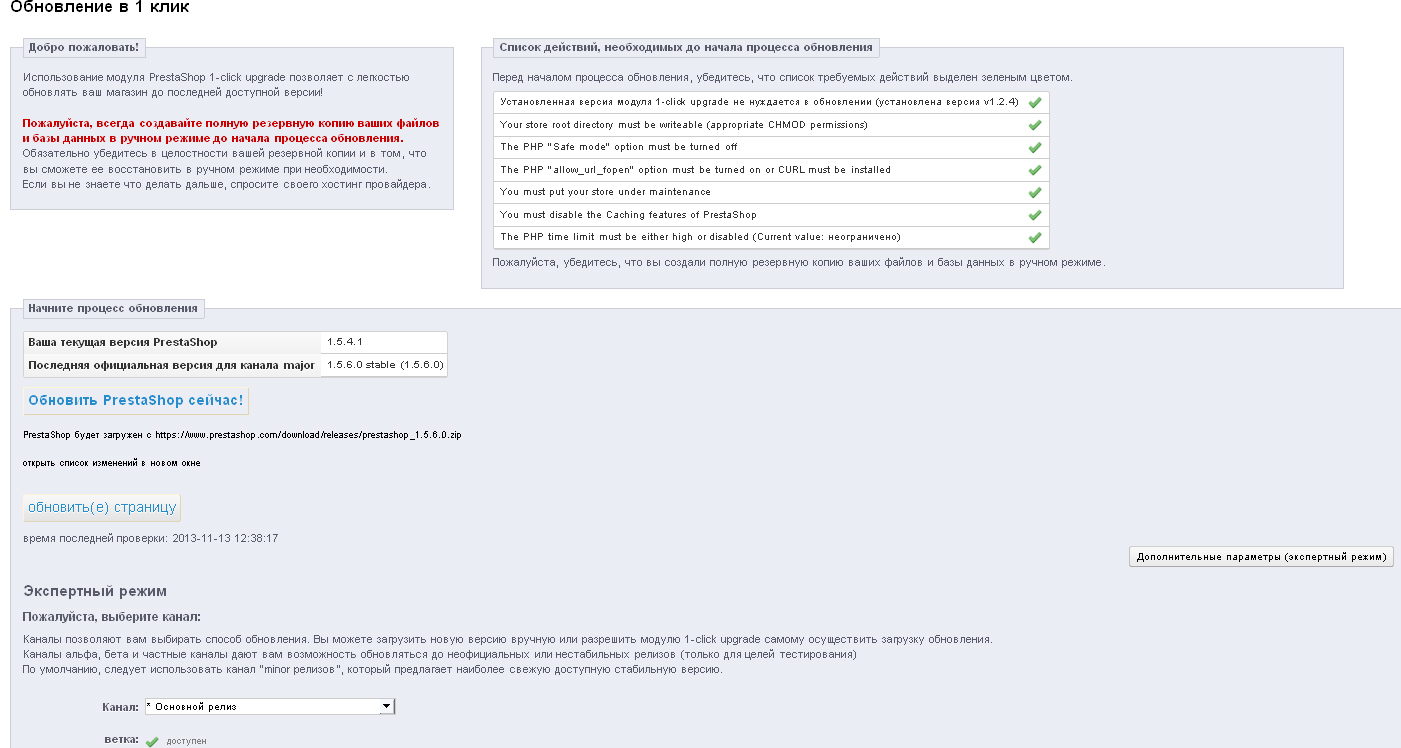 Trying upgrade my Prestashop from 1.5.4.1 to 1.5.6.0. Have last version (1.2.4) 1-Click-Upgrade module, all requirements marked green checkmarks.