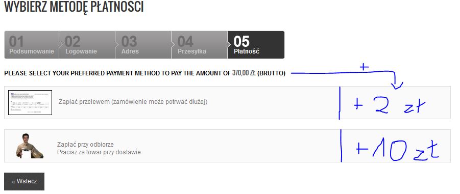 marcin1987a Posted November 13, 2013 Share Posted November 13, 2013 Witam Chciałbym zwrócić się o pomoc do forumowiczów o powiedzenie lub jakies wskazówki odnośnie mojego problemu Ogólnie temat jest taki iż chciałbym aby można było w adminie dla każdego produktu dodać dodatkową wartość przy przelewie dodatkową wartość przy pobraniu Dodawanie tej wartości powinno się odbywać na końcu , w podsumowaniu (chociaż może być wcześniej jeżeli jest taka możliwość) Na załączonym screenie 1.jpg pokazuje o co chodzi Pierwszy etap czyli dodanie inputów w panelu admina przy produkcie jest już zrobione (zał 2.jpg ) Również baza przyjmuje wartości które przekazuje natomiast gdy chce wyswietlic np w wierszu wartosci poprzez: displayPrice price=$product.add_platnosc_przelew displayPrice price=$product.add_platnosc_pobranie Pokazuje 0,00 zł. Z góry dziękuje za odpowiedź. Pozdrawiam Link to comment Share on other sites More sharing options...