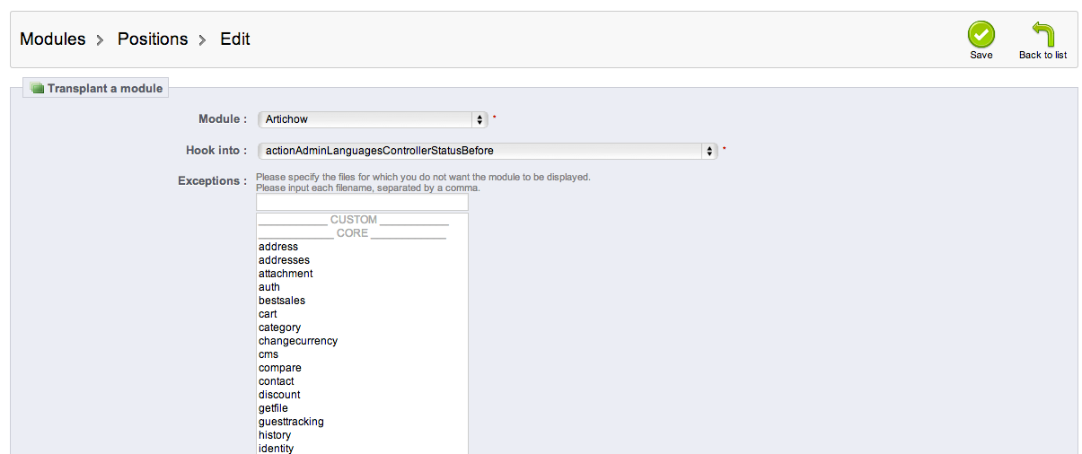 Devstore Thai Posted November 14, 2013 Share Posted November 14, 2013 เข้าที่หน้า Modules > Positions นะครับ ถ้าย้ายอย่างง่ายๆ ก็ให้ทำจากปุ่ม "Run LiveEdit" แต่ถ้ามีการเพิ่มตำแหน่งก็ให้ใช้จากปุ่ม "Transplant a module" โดยเลือกโมดูลที่ต้องการ (Module) จากนั้นเลือกตำแหน่งที่ต้องการ (Hook into) ให้เลือกกลุ่มคำที่ขึ้นต้นด้วย display นะครับ ปกติจะใช้หลักๆ คือ - displayHeader - displayHome - displayLeftColumn - displayRightColumn - displayFooter อ้างอิง http://doc.prestashop.com/display/PS15/Hooks+in+PrestaShop+1.5 Link to comment Share on other sites More sharing options...