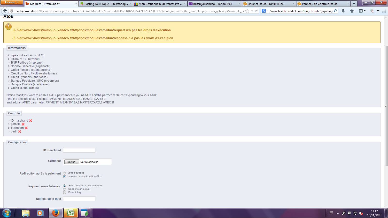 I have to change/accept the file module/atos/bin to 755. I have been to the file module, then atos then bin. Now I don't know what to change. And when I go into modife the file, it tells me 'Ce fichier est probablement un fichier binaire' and the file has a lot of ��