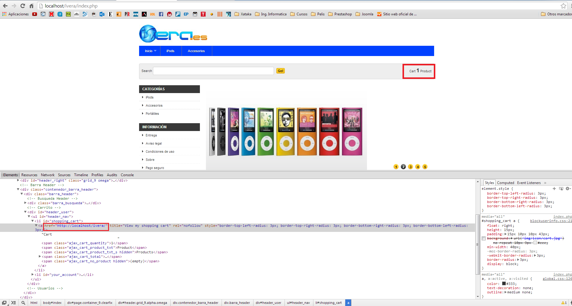 He creado una nueva barra debajo del menu superior para meter ahí el buscador, la información de usuarios y el carrito de la compra. Pues bien, al cambiar el carrito de sitio, cuando hago click en el para que me lleve al resumen de productos, no cambia de página, vuelve a la pagina principal.