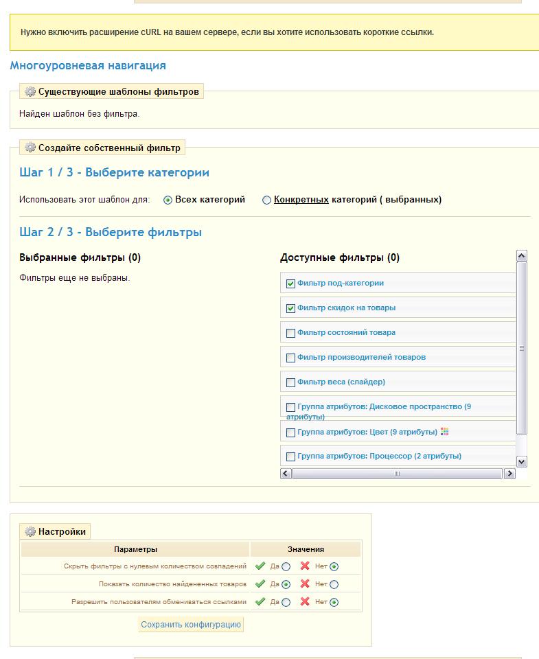 Giorgy Posted November 22, 2013 Author Share Posted November 22, 2013 Для начала добавить товаров с категориями, потом эти вот параметры что ты создал добавил к каждому товару в виде комбинации (цвета размера и материала), после в фильтры проиндексировать нажав подряд на 4 кнопки сверху и создать шаблон с выбранными параметрами ниже и сохранить Не понял какие 4 кнопки нажать и где сохранять шаблон Link to comment Share on other sites More sharing options...