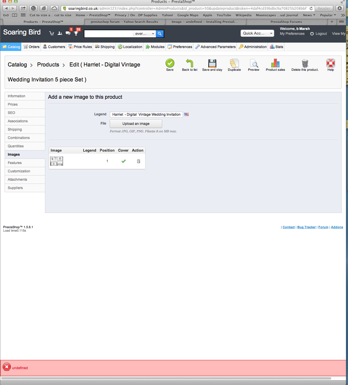 mhakiwa Posted November 23, 2013 Share Posted November 23, 2013 Since I have upgrading I am unable to add any images to my shop, attached is an error that comes. This is happening when adding a new image to an exisitng product. When I am trying to upload a new product, nothing is happening, what is the problem with uploading images that are kb's in size. Link to comment Share on other sites More sharing options...