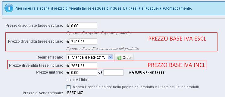 2- Come faccio a inserire il prezzo base? Qual è il nome della variabile prezzo base iva inclusa e/o prezzo base iva esclusa ?