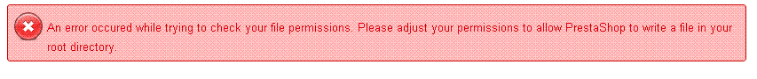 El Patron Posted November 27, 2013 Share Posted November 27, 2013 as per error message, PrestaShop can not create files in your shop 'root' directory. You should contact your hosting company. Many times this is due to host creating your root directory with different 'owner' than your url name (minus the www). for example, I create your directory as user elpatron. This makes elpatron the owner for read/write/execute. This in fact should the main domain shop url without the www. Hope that helps. Link to comment Share on other sites More sharing options...