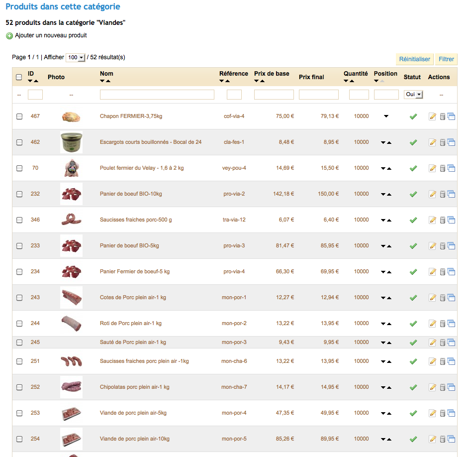 Flavien Posted November 27, 2013 Share Posted November 27, 2013 Salut, je suis confronté à un beau bug sous une version 1.4.5.1. Aprés toutes les vérifications d'usage, un produit mis dans une catégorie s'y affiche correctement, dans une sous rubrique aussi. Par contre dés que l'on veut classer à la main en back, plus rien ne marche les positions sont aléatoires, malgré le choix de classement préférence/produit en front c'est le bazar… Plus encore, un produit décliqué d'une catégorie y apparait encore. Dernière précision, une cat en front affiche 129 produit et en back 60 !!! Je veux bien de l'aide car c'est la première fois que je bloque depuis la première version de presta !!! Le client qui s'occupe du site m'a pas tout expliqué, peut-être a-t-il supprimé des cat ou autre… Bref des idées…ça urge un peu car on estr sur un site en prod. Merci d'avance Link to comment Share on other sites More sharing options...