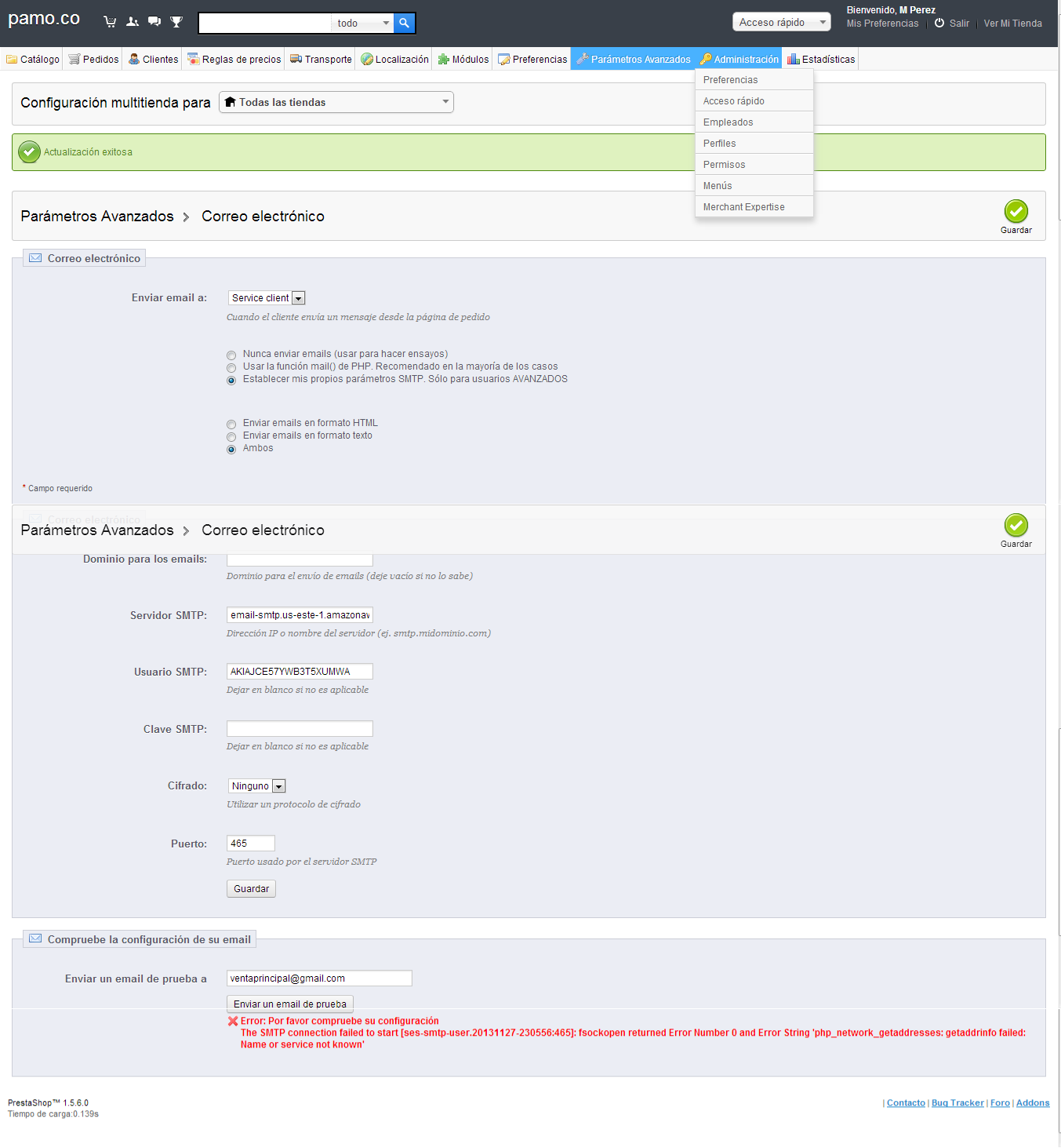 [email protected] Posted November 27, 2013 Share Posted November 27, 2013 Consulta sobre configuración STMP. Tengo una cuenta en amazonses ellos me dan los datos para el envió. Mi Prestashop es 1.5.6, voy a parámetros avanzados - correo electrónico y marco la opción:Establecer mis propios parámetros SMTP. Sólo para usuarios AVANZADOSingreso la información pero arroja error 110. agradezco si alguien tiene un aporte para este tema. Link to comment Share on other sites More sharing options...