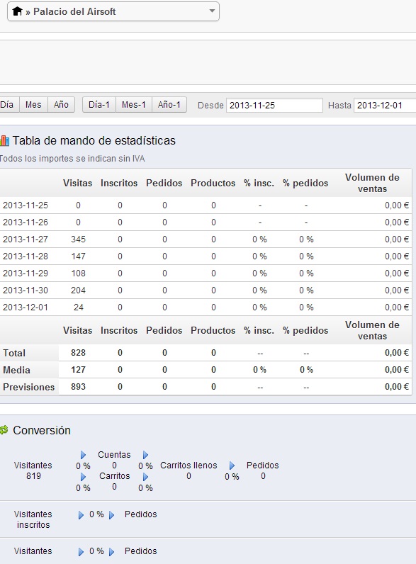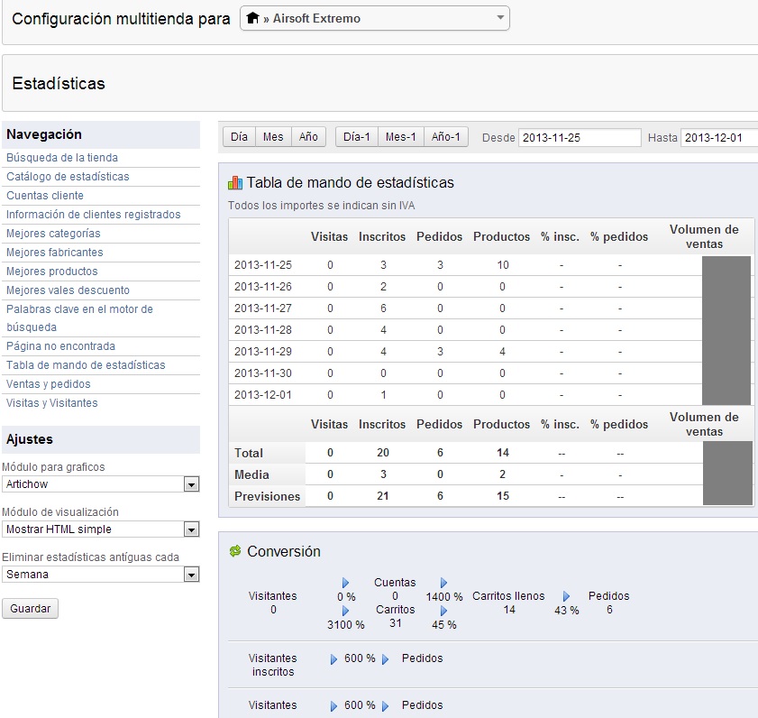 juanla2000 Posted December 1, 2013 Share Posted December 1, 2013 Hola a todos, tengo un problema con las estadísticas de una de mis tiendas en modo multitienda, solo guarda las visitas de la tienda con ID 2, la tienda con ID 1 que es la que mas visitas diarias tengo aparece a 0, en "Tabla de mando de estadísticas" y en "Visitas y Visitantes" el resto de estadísticas de usuario, ventas y demás se visualizan correctamente. Los módulos de estadísticas los he reseteado, están activados en ambas tiendas y por el volumen de la BD parece que los está guardando (no se como comprobar si los registros son de ambas tiendas o solo de una). Adjunto imágenes de los resultados de ambas tiendas al pulsar en la tabla de estadísticas, he hecho todo lo que he podido y he buscado en foros, pero nada, NECESITO AYUDA! Si alguno se pregunta por que utilizo estas estadísticas con lo pesadas que son, es por sencillez y rápida visualización. Link to comment Share on other sites More sharing options...